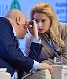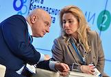 XI Safer Internet Forum at MIA "Rossiya Segodnya". Andrey Klishas (left), chairman of the Russian Federation Council Committee on Constitutional Legislation and State Building, and Elena Milskaya, chairman of the board of trustees of the National Center for Assistance to Missing and Injured Children, (right) during a forum meeting.