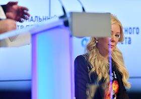 XI Safer Internet Forum at MIA "Rossiya Segodnya". Manager of the Association of Internet Industry Market Participants "League of Safe Internet" Ekaterina Mizulina during a forum meeting.