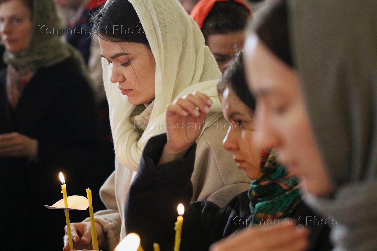 Праздничное пасхальное богослужение в соборе Казанской иконы Божией Матери. Прихожане во время службы.