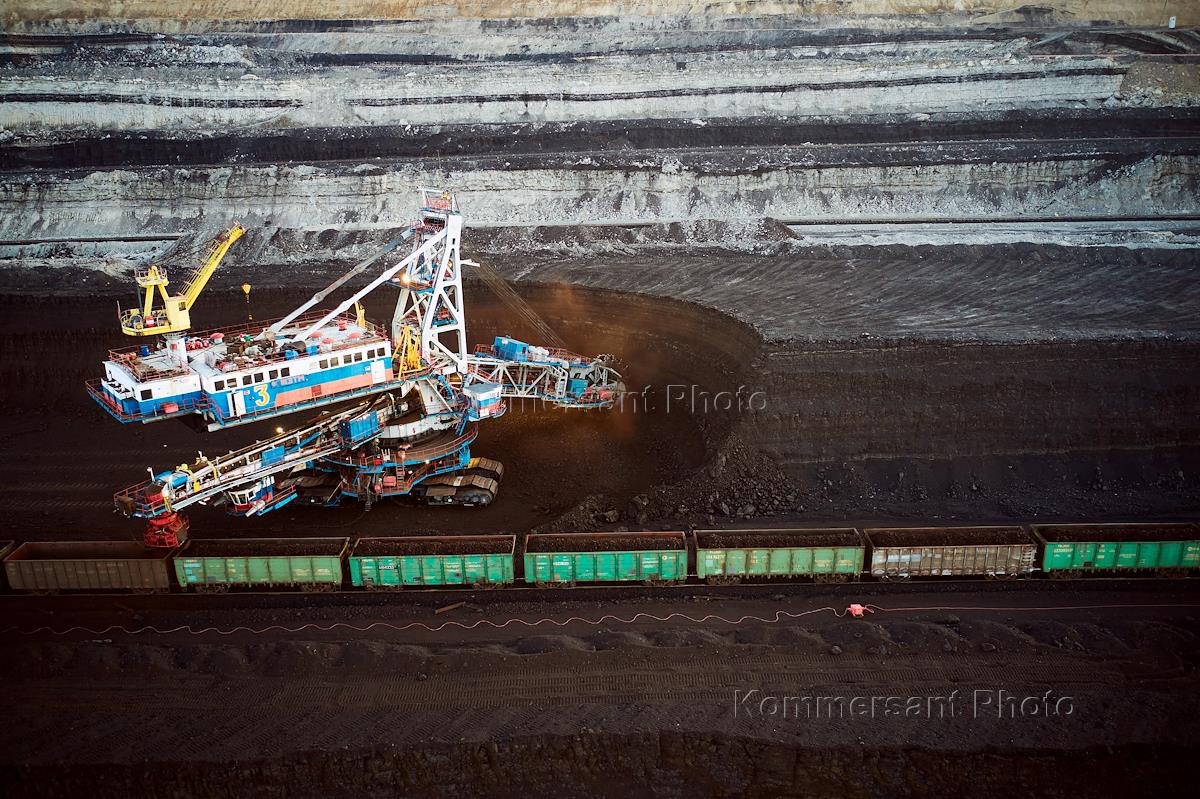 Бородинский угольный разрез, входящий в состав Сибирской угольной энергетической компании (СУЭК). Открытый способ добычи угла. Жанровая фотография.