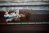 Бородинский угольный разрез, входящий в состав Сибирской угольной энергетической компании (СУЭК). Железнодорожные состав с углем.