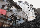 Бородинский угольный разрез, входящий в состав Сибирской угольной энергетической компании (СУЭК). Открытый способ добычи угла. Сотрудник разреза на площадке угольного комбайна во время работы.