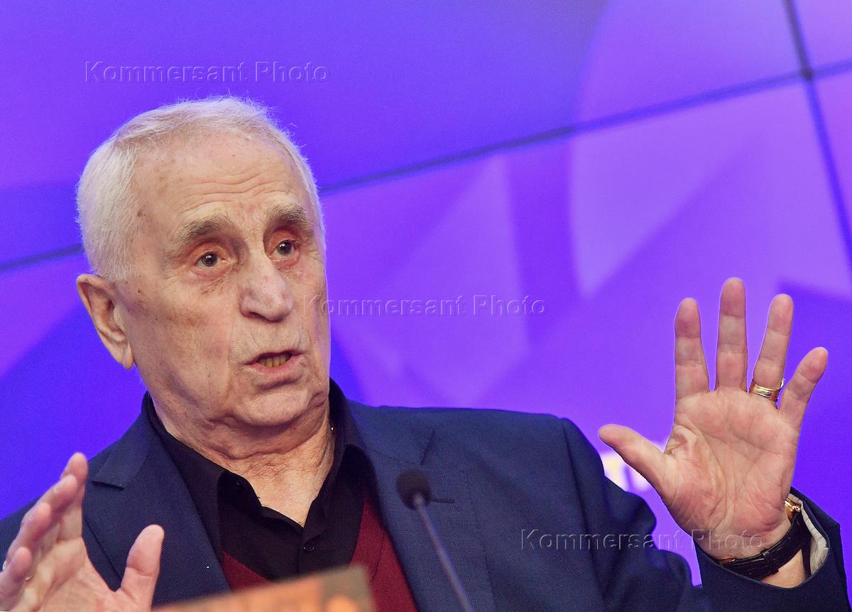 Пресс-конференция, посвященная 100-летию футбольного клуба "Спартак" в МИА "Россия сегодня". Футбольный эксперт, чемпион СССР 1969 года в составе команды "Спартак" Евгений Ловчев во время пресс-конференции.