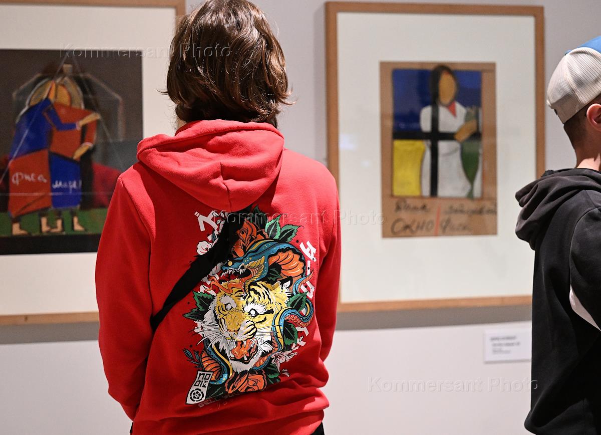Пресс-показ выставки "Между землей и небом" в Государственном Музее изобразительных искусств им. А.С. Пушкина. Посетители на выставке.