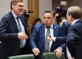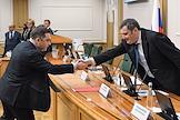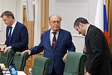Meeting of the Council for the Development of the Digital Economy on the topic "Scientific and educational policy and training in the era of the digital economy" in the Federation Council of Russia. Vyacheslav Timchenko (center), representative in the Federation Council from the executive body of the government of the Kirov region, before the meeting.