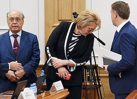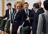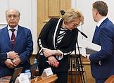Meeting of the Council for the Development of the Digital Economy on the topic "Scientific and educational policy and training in the era of the digital economy" in the Federation Council of Russia. Representative in the Federation Council from the executive body of state power of the Republic of Bashkortostan Lilia Gumerova (center) and Rector of Moscow State University named after M.V. Lomonosov Viktor Sadovnichy (left) during the meeting.