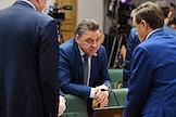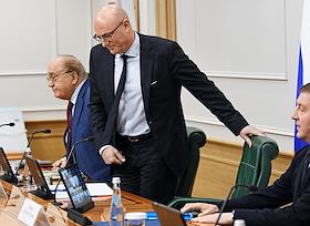 Meeting of the Council for the Development of the Digital Economy on the topic "Scientific and educational policy and training in the era of the digital economy" in the Federation Council of Russia. Chairman of the Russian State Duma Committee on Information Policy, Information Technologies and Communications Alexander Khinshtein (right) during a meeting.