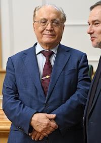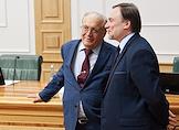 Meeting of the Council for the Development of the Digital Economy on the topic "Scientific and educational policy and training in the era of the digital economy" in the Federation Council of Russia. Lomonosov Moscow State University rector Viktor Sadovnichy (right) before the meeting.