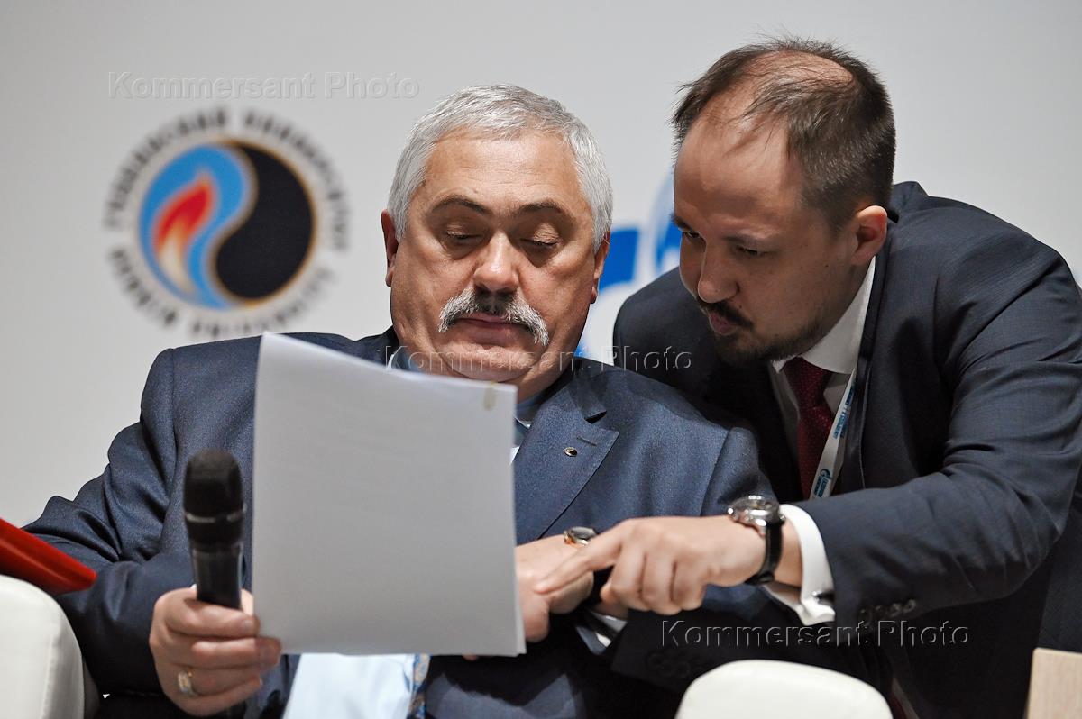 Международный форум "Нефть и газ" в Российском государственном университете (РГУ) нефти и газа (национальный исследовательский университет) имени И.М. Губкина. Ректор РГУ нефти и газа (НИУ) имени И.М. Губкина Виктор Мартынов (слева) во время стратегической панельной сессии "Будущее энергетики: новые тенденции развития и роль нефтегазового сектора".