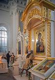 Праздничное пасхальное богослужение в Воскресенском Смольном соборе. Прихожане в храме.