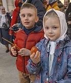 Праздничное пасхальное богослужение в Воскресенском Смольном соборе. Прихожане на площади у храма.