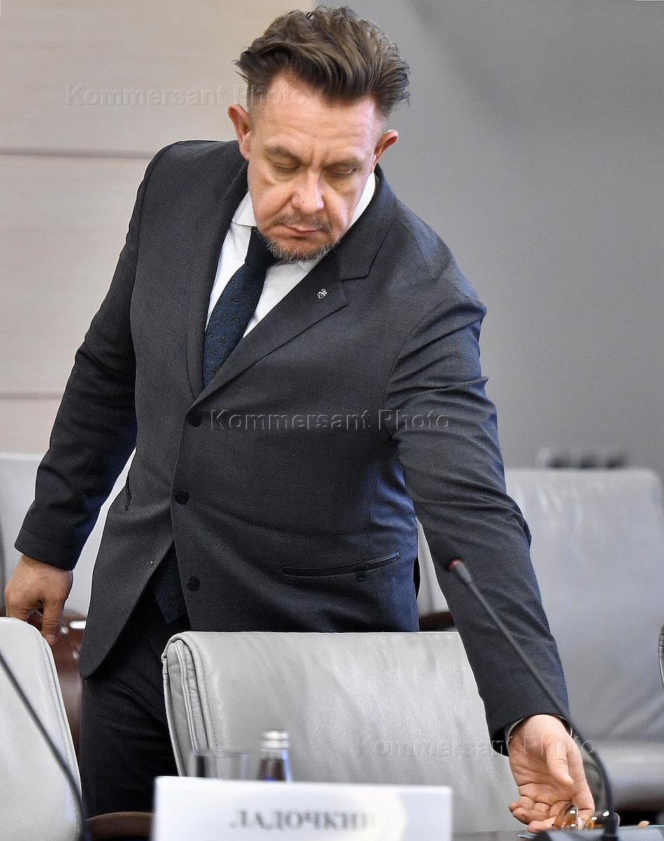 Первое заседание Общественной палаты города Москвы (ОПМ) четвертого созыва в Московском парламентском центре. Специальный представитель Президента России по международному культурному сотрудничеству Михаил Швыдкой (слева) заместитель председателя комиссии ОПМ по реализации программы "Мой район" и комплексному развитию города Сергей Ладочкин (справа) перед началом заседания.