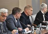 Первое заседание Общественной палаты города Москвы (ОПМ) четвертого созыва в Московском парламентском центре. Первый заместитель исполнительного директора Ассоциации менеджеров России Вадим Ковалев (справа) во время заседания.