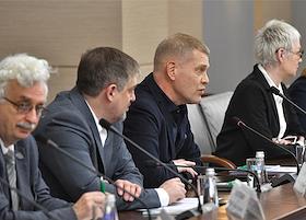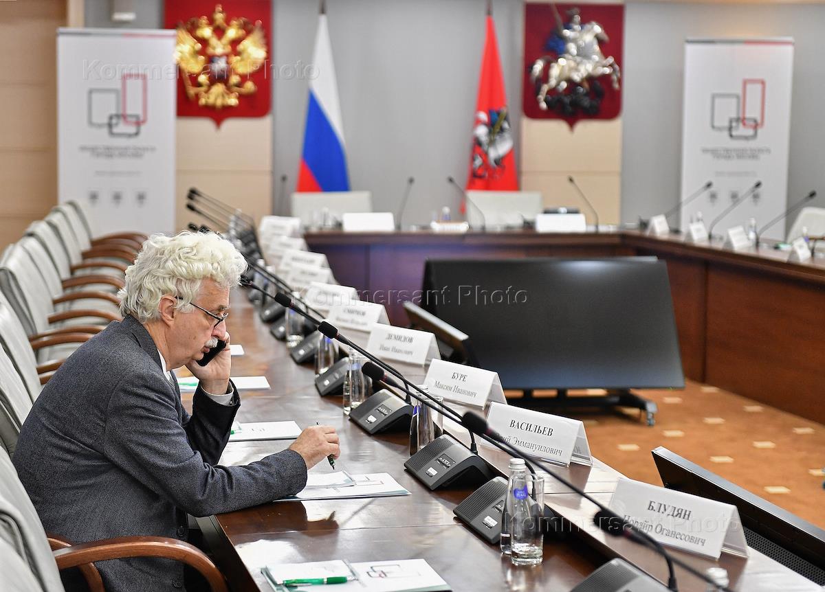 Первое заседание Общественной палаты города Москвы (ОПМ) четвертого созыва в Московском парламентском центре. Директор московского парка "Зарядье" Иван Демидов (в центре) во время заседания.