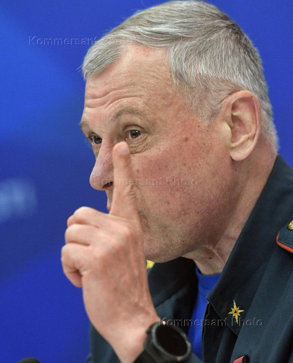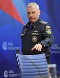 Временно исполняющий обязанности министра России по делам гражданской обороны, чрезвычайным ситуациям и ликвидации последствий стихийных бедствий Александр Чуприян во время пресс-конференции, приуроченной ко Дню пожарной охраны, который отмечается 30 апреля, в МИА "Россия сегодня".