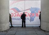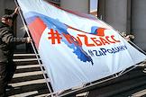 Виды Новокузнецка. Жанровая фотография. Установка баннера в поддержку специальной военной операции Вооруженных сил России на Украине.