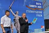 Военно-историческая акция "Вахта Памяти-2022. Сталинградский рубеж" в Светлоярском районе Волгоградской области. Заместитель председателя комитета Государственной Думы России по развитию гражданского общества, вопросам общественных и религиозных объединений Владимир Шаманов (справа) во время церемонии открытия.