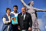 Военно-историческая акция "Вахта Памяти-2022. Сталинградский рубеж" в Светлоярском районе Волгоградской области. Заместитель председателя комитета Государственной Думы России по развитию гражданского общества, вопросам общественных и религиозных объединений Владимир Шаманов (в центре) во время церемонии открытия.