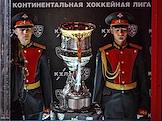 Континентальная хоккейная лига (КХЛ). Плей-офф. Финал Чемпионата. 6-й матч. Матч между командами ЦСКА (Москва) -"Металлург Мг" (Магнитогорск) на стадионе "ЦСКА-Арена". Кубок Гагарина под охраной Почетного караула.