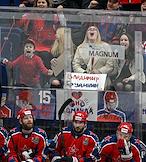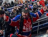 Континентальная хоккейная лига (КХЛ). Плей-офф. Финал Чемпионата. 6-й матч. Матч между командами ЦСКА (Москва) -"Металлург Мг" (Магнитогорск) на стадионе "ЦСКА-Арена". Болельщики на трибуне во время матча.