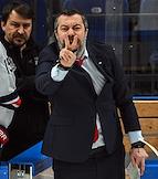 Континентальная хоккейная лига (КХЛ). Плей-офф. Финал Чемпионата. 6-й матч. Матч между командами ЦСКА (Москва) -"Металлург Мг" (Магнитогорск) на стадионе "ЦСКА-Арена". Главный тренер команды ЦСКА Сергей Федоров (в центре) во время матча.