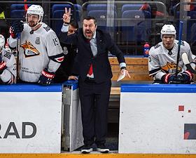 Континентальная хоккейная лига (КХЛ). Плей-офф. Финал Чемпионата. 6-й матч. Матч между командами ЦСКА (Москва) -"Металлург Мг" (Магнитогорск) на стадионе "ЦСКА-Арена". Главный тренер команды "Металлург Мг" Илья Воробьев (в центре) во время матча.