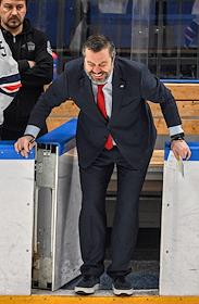Континентальная хоккейная лига (КХЛ). Плей-офф. Финал Чемпионата. 6-й матч. Матч между командами ЦСКА (Москва) -"Металлург Мг" (Магнитогорск) на стадионе "ЦСКА-Арена". Главный тренер команды ЦСКА Сергей Федоров во время матча.