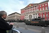 Репетиция Военного парада, посвященного 77-й годовщине Победы в Великой Отечественной войне, на Красной площади. Танк Т-14 во время прохода военной техники по Тверской улице.
