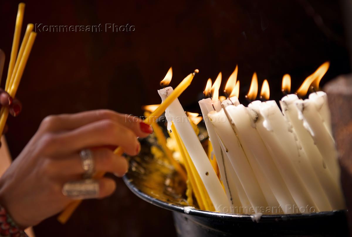 Views of Yerevan. Genre photography. Easter celebration in the temple.