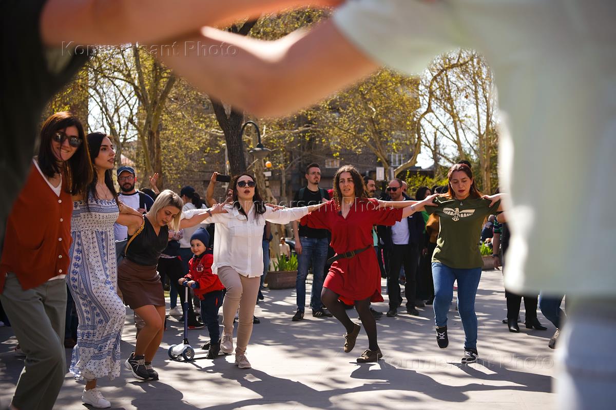 Views of Yerevan. Genre photography. People are dancing in the street.