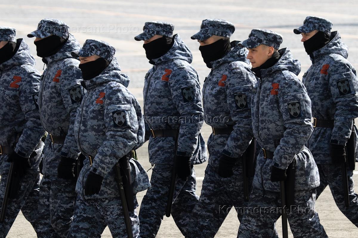 Репетиция Военного парада, посвященного 77-й годовщине Победы в Великой Отечественной войне, на Дворцовой площади. Военнослужащие во время репетиции.