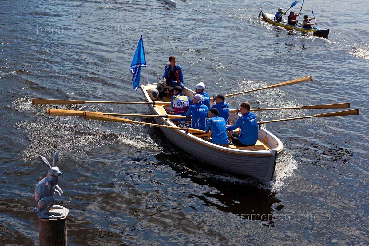 Петровский гребной марафон в честь празднования дня рождения Петра I. Участники возле памятника Зайцу у Иоанновского моста.