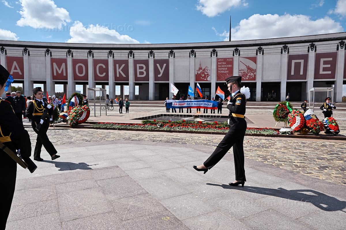 Первомайский Всероссийский автопробег Федерации независимых профсоюзов (ФНПР) России "За мир без нацизма!". Памятная стела "3-й украинский фронт" на Поклонной горе.