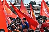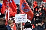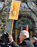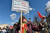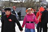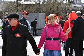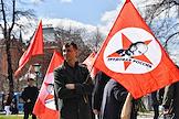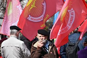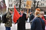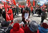 Митинг КПРФ, посвящённый Дню международной солидарности трудящихся, в сквере возле памятника Карлу Марксу на Театральной площади. Жанровая фотография. Участники на митинге.