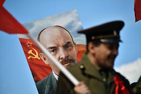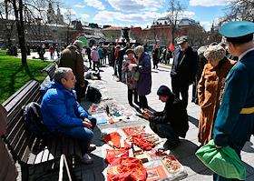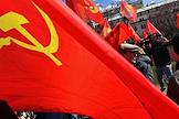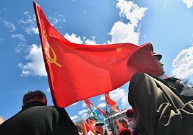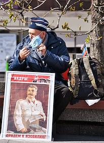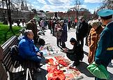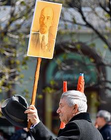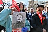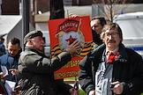 Митинг КПРФ, посвящённый Дню международной солидарности трудящихся, в сквере возле памятника Карлу Марксу на Театральной площади. Продажа сувенирной продукции с символикой КПРФ во время митинга.