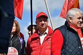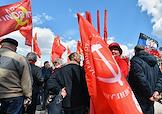 Митинг КПРФ, посвящённый Дню международной солидарности трудящихся, в сквере возле памятника Карлу Марксу на Театральной площади. Первый заместитель председателя комитета ГД России по делам национальностей Валерий Рашкин (в центре) на митинге.