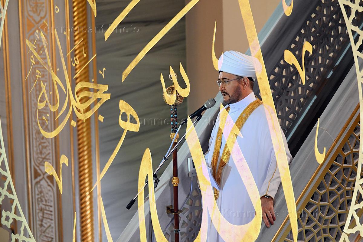 Festive events on the day of Uraza Bayram in the Moscow Cathedral Mosque. Mufti Sheikh Ravil Gainutdin (center), chairman of the Council of Muftis of Russia, chairman of the Spiritual Board of Muslims of the European part of Russia, at a service in a mosque.