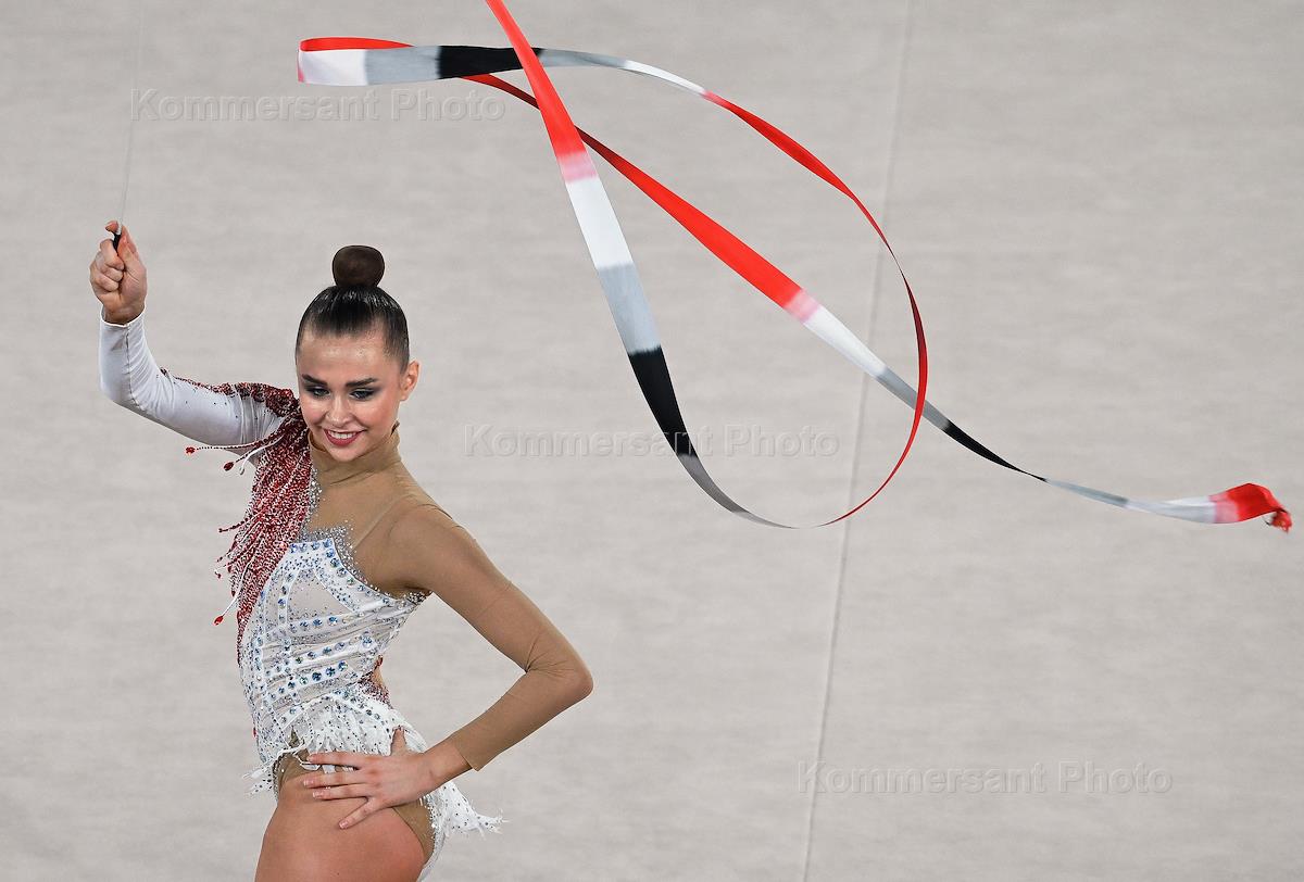 Международный турнир по художественной гимнастики в Центре Гимнастики Ирины Винер-Усмановой. Личное многоборье. Белорусская гимнастка Анна Кондрашина во время выступления с лентой.