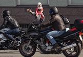 Мотоциклетный парад в честь открытия мотосезона на Дворцовой площади. Участница перед началом мотопарада.