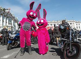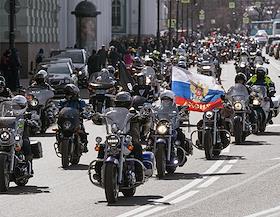 Мотоциклетный парад в честь открытия мотосезона на Дворцовой площади.
