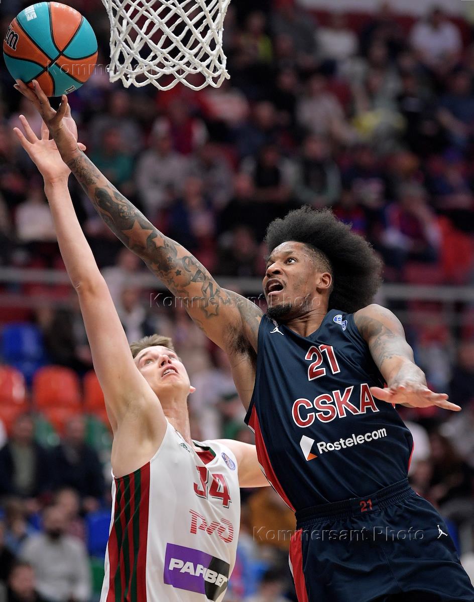 1/2 финала Единой Лиги ВТБ. Матч между командами ЦСКА (Москва) - "Локомотив - Кубань" (Краснодар) на стадионе "Мегаспорт". Игрок команды ЦСКА Уилл Клайберн (справа) во время матча.