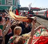 Церемония встречи ретро-поезда "Эшелон Победы" на вокзале "Новосибирск-Главный" в рамках праздничных мероприятий, посвященных 77-й годовщине Победы в Великой Отечественной войне. Участники во время церемонии.