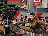 Театрализованное представление, посвященное 77-й годовщине Победы в Великой Отечественной войне, на Финляндском вокзале. Участники во время представления.