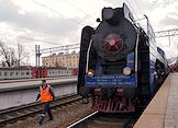 Театрализованное представление, посвященное 77-й годовщине Победы в Великой Отечественной войне, на Финляндском вокзале. Прибытие ретро-поезда "Транс-сибирский экспресс".