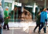 Театрализованное представление, посвященное 77-й годовщине Победы в Великой Отечественной войне, на Финляндском вокзале. Жанровая фотография. Собака облизывает фотоаппарат.