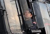 Театрализованное представление, посвященное 77-й годовщине Победы в Великой Отечественной войне, на Финляндском вокзале. Машинист в кабине ретро-поезда "Транс-сибирский экспресс".