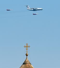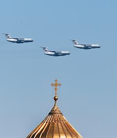 Dress rehearsal of the Military Parade dedicated to the 77th anniversary of the Victory in the Great Patriotic War, on Red Square. Heavy transport aircraft Il-76MD at the final rehearsal of the air part of the military parade.