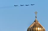 Dress rehearsal of the Military Parade dedicated to the 77th anniversary of the Victory in the Great Patriotic War, on Red Square. Military aviation during the rehearsal of the air part of the military parade.