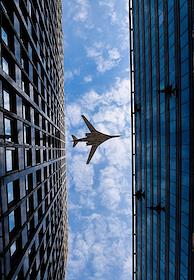 Dress rehearsal of the Military Parade dedicated to the 77th anniversary of the Victory in the Great Patriotic War, on Red Square. Aircraft of military aviation during the final rehearsal of the air part of the military parade.