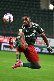Российская Премьер-Лига (РПЛ). Тинькофф - Чемпионат России по футболу 2021/2022. 28-й тур. Матч между командами "Локомотив" (Москва) – "Рубин" (Казань) на стадионе "РЖД Арена". Игрок команды "Локомотив" Джирано Керк во время матча.